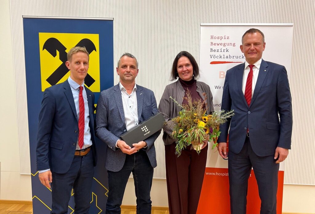 30. Oktober 2025Mitte Oktober war unsere Geschäftsfüherin Elisabeth Buchegger als Vortragende bei der Veranstaltung „Familienabsicherung – Zukunft schützen durch Vorsorge“ der Raiffeisenbank Vöcklabruck eingeladen. Ein Thema mit Zuspruch, der Raiffeisensaal war bis auf den letzten Platz gefüllt und auch im Anschluss gab es jede Menge Fragen zum Thema Hospiz und Palliative Care zu beantworten.